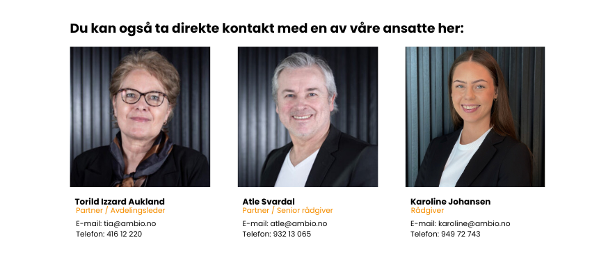 Har du noen spørsmål eller ønsker å komme i kontakt med oss? Da kan du legge igjen din kontaktinformasjon under, slik at vi i Ambio People kan kontakte deg snarlig.
